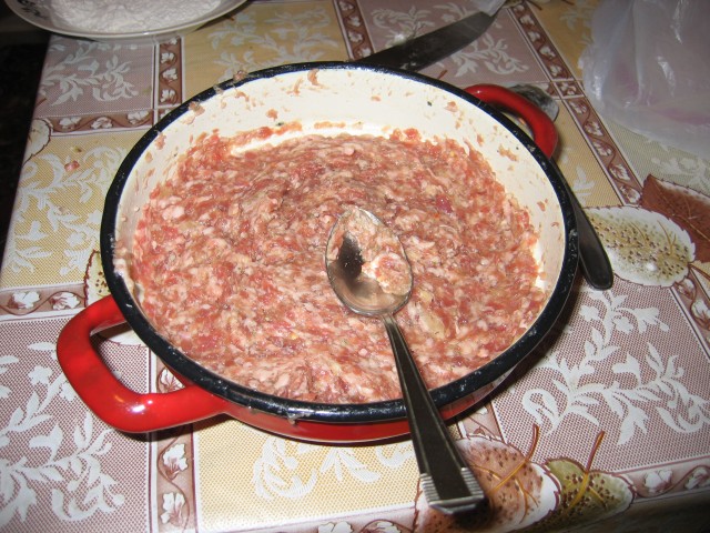 Daca iese prea moale compozitia (carnea grasa, de exemplu) se adauga si o lingura de faina, pentru a oferi consistenta.