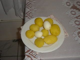 Dupa ce cartofii si ouale sunt fierte le trecem printr-un jet de apa rece ca sa le curatam mai usor.