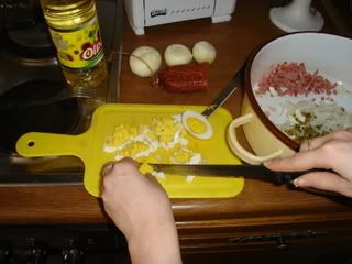 Taiem felioare ceapa,castravetele,sunca si salamul astfel: