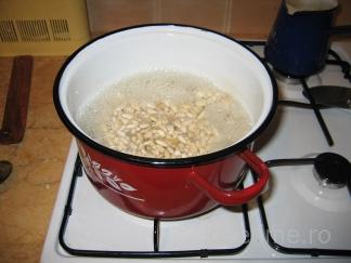 Se pune la fiert la foc mare si se lasa sa fiarba o ora; daca apa scade, se completeaza 'din mers' in timp ce fierbe: