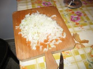 Se taie o ceapa mare cubulete mici si se pune la prajit in ulei, in care s-a adaugat in prealabil si jumatate