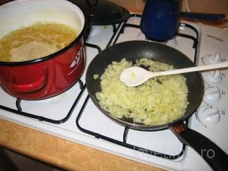 b) in timp ce se prajeste ceapa, la foc mic (continuarea dupa poza...):