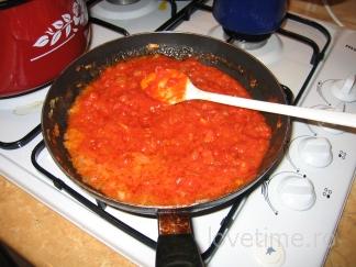 intr-o cana alaturi, se pune putina apa, o lingura de faina (optional, dar e buna caci leaga fasolea), si vreo 3-4 linguri de pasta de rosii. Se amesteca pana cand se obtine o compozitie uniforma, si apoi se toarna peste ceapa care se prajeste.