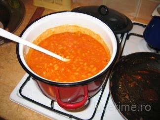 Dupa ce se prajesc toate la un loc (cam 5-10 minute la foc mic), compozitia se toarna direct peste fasole: