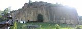 Panorama cu bolovanul Gigant. In stanga se vede mica biserica: peretele construit si antecamera alba.
