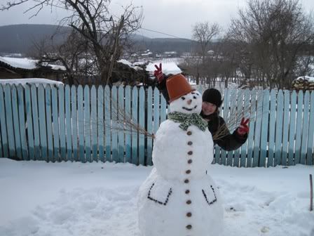 Vreau sa fac si eu un omulet de zapada, doar ca in zona a lumii in care sunt, e inca aproape de tricou ..... abia astept sa revin acasa si sa fac un omulet asemanator, si sa ma pozez ghidus  :-[
