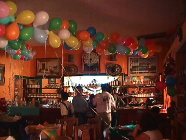 ...baloanele...da, racoritoarele sunt aici, fructe din belsug, prajiturele de toate felurile, covrigei, biscuiti, aparent nu lipseste nimic. La bucatarie totul e pregatit. Maaama, ce bucate!!!!  :o Indata vin oaspetii! Ma duc sa ii intampin!